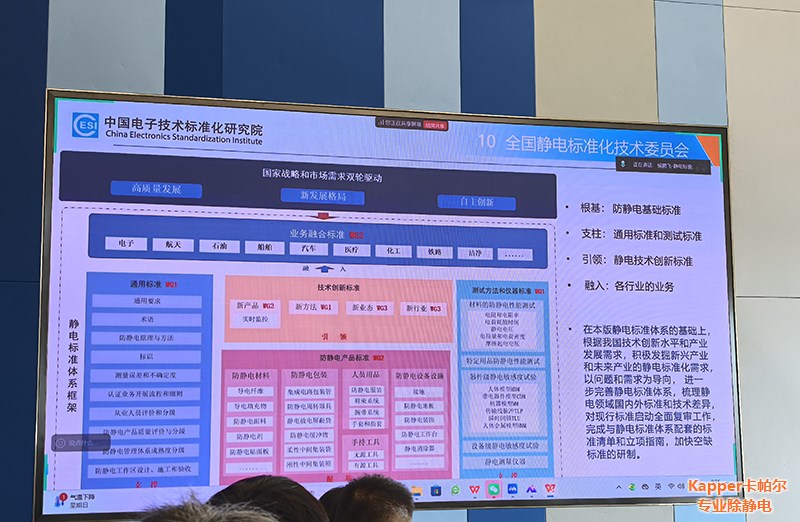 2025年8月7日,全國(guó)靜電標(biāo)準(zhǔn)化技術(shù)委員會(huì)《靜電學(xué)》國(guó)家標(biāo)準(zhǔn)研討會(huì)在上海浦東新區(qū)隆重召開(kāi)。作為中國(guó)靜電控制領(lǐng)域的領(lǐng)軍企業(yè)代表,Kapper卡帕爾總經(jīng)理王春元出席本次會(huì)議,與靜電標(biāo)委會(huì)ESD專(zhuān)家30余家企業(yè)代表共議國(guó)標(biāo)修訂,為提升我國(guó)靜電防護(hù)技術(shù)水平、規(guī)范行業(yè)發(fā)展貢獻(xiàn)智慧與力量。